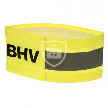 BHV armband, kleur geel met reflecterende band. De BHV armband heeft een klittenbandsluiting en voorzien van een opdruk "BHV".