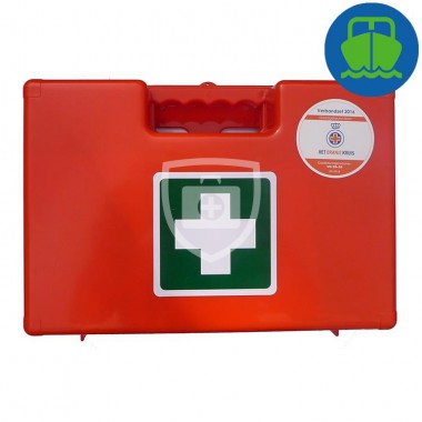 EHBO koffer binnenvaart richtlijn 2016 gevuld volgens de laatste richtlijn van Het Oranje Kruis uit 2016. Deze verbandkoffer is overzichtelijk gevuld en wordt geleverd met wandbeugel en bevestingingsmateriaal!