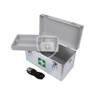Opzoek naar een stevige en robuuste aluminium EHBO koffer? Dan is deze EHBO koffer zeer geschikt. De aluminium EHBO koffer is voorzien van 2 sloten en handige draagriem waardoor u de aluminium EHBO koffer gemakkelijk aan de schouder meeneemt. Door het gebruik van aluminium is deze EHBO koffer ook licht van gewicht wat het draagcomfort ten goede komt.