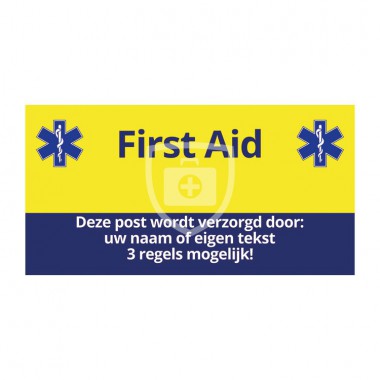 Met behulp van deze banner valt uw EHBO post altijd op! In plaats van de Star of Life is het ook mogelijk uw logo te plaatsen. Tevens kan in de blauwe balk uw verenigingsnaam, website adres of andere informatie worden geplaatst.