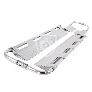 Een veilige en beschermende methode om patiënten met ernstig wervel-letsel te vervoeren. Deze brancard is zo ontworpen dat de hulpverlener de beide uiteinden kan ontkoppelen en iedere zijde onder de patiënt kan schuiven. Zo kunnen ergere verwondingen worden voorkomen.