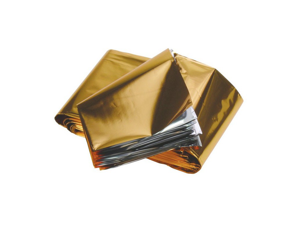 De isolatie reddingsdeken Goud / Zilver biedt bescherming tegen onder andere onderkoeling of oververhitting. -